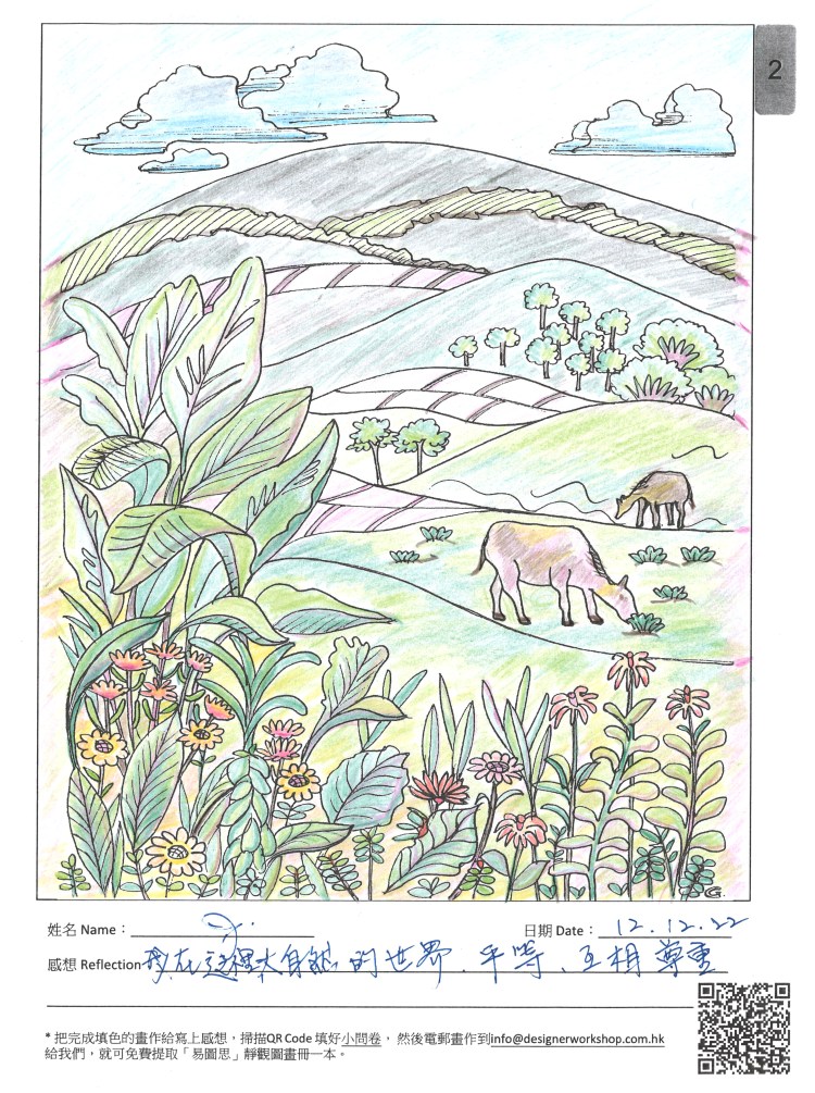 「坤」卦象徵大地的 廣闊與柔順,恆常不變,能承載天下萬物。世事往往不如人意,充滿困難與挑戰,教人難以忍受。然而,當我們將一己之心放下,讓自己襟懷如大地般廣闊,品格如大地般謙卑,則能包容與承受一切。當具備安穩而貞定的心,生活自然會處處順境。